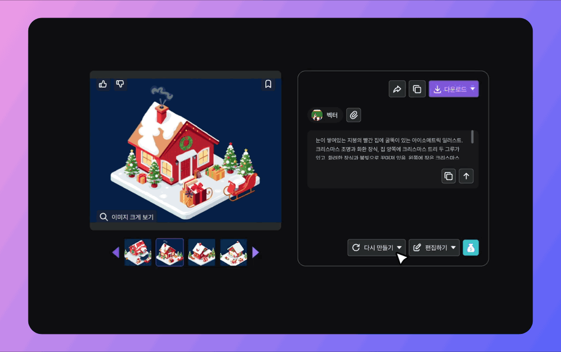 한 번 더 시도하고 싶다면 [다시 만들기] 기능을 바로 다시 사용할 수 있어요.